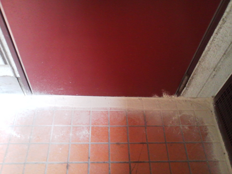 このほか、玄関外側の角にはブラックキャップを2個設置、そしてエアコンホースと壁の隙間や、流しの下の排水口ホースと床の隙間をこれで埋めます。↓