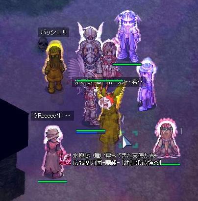 ウチの所属ギルド蘭組の3人が同時発光に挑みました。