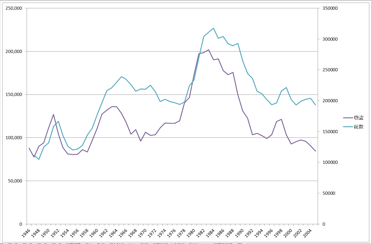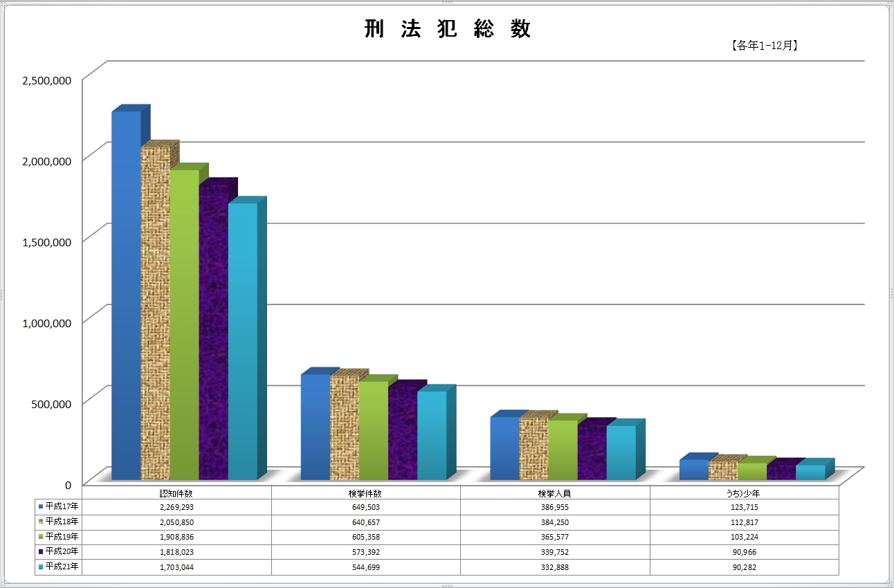 思い込みと言えば定期的に上げなければいけない犯罪率の推移です。