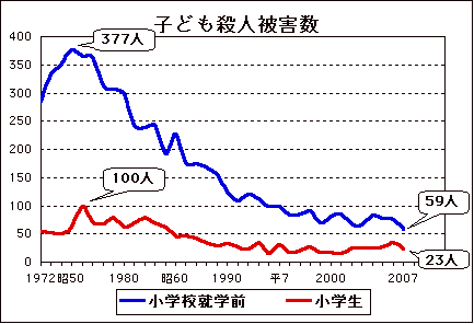 また、1996年あたりから強盗件数が増えているのは、車上荒らしや自販機荒らし、警察官が職質したりで判明する窃盗が増えたためと言われています。なんでしょう、暇になってしまった警察官が点数稼ぎに走りだしたということでしょうか。ま、でも凶悪犯罪が減るのは何にせよ良いことです。