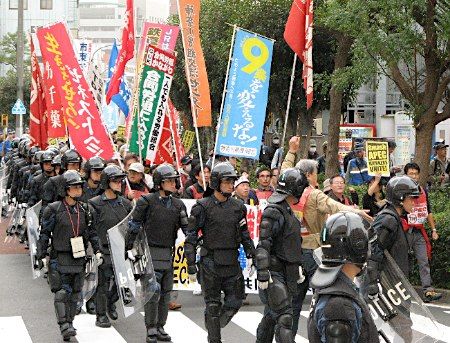 そしてこれが新聞によると『平和市民団体』によるデモ。400人ほど。