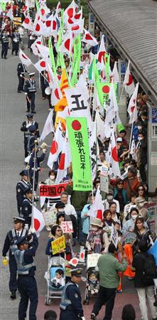 右派系市民グループは一般の会社員や学生、主婦らも参加。組織構成がゆるやかなのが特徴で、インターネットのホームページなどを通じて、デモへの参加を募るなどしている。今年は、一部の過激な参加者が特定の団体への抗議行動により威力業務妨害容疑などで逮捕される事件も起きた。