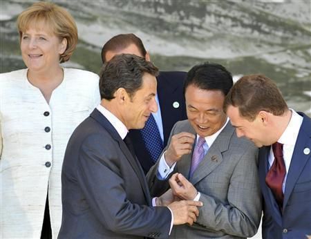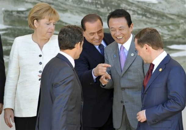 俺はサルコジとメドベージェフに囲まれて、メルケル姉さんが呆れてる一枚が好きだなw