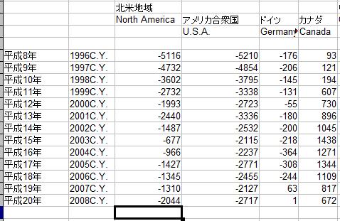 特許等使用料ってのが財務省のHPで見られるんだけど、2008年のアジア地域(ASEAN)、北米/中南米/大洋州地域、西欧地域(EU)、