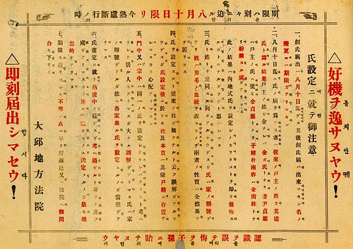 朝鮮風の姓だと中国人に馬鹿にされるから、日本人風の姓名に変えたいという希望があったので「創氏改名」を許可するっていうお触れを出した。ということとか、