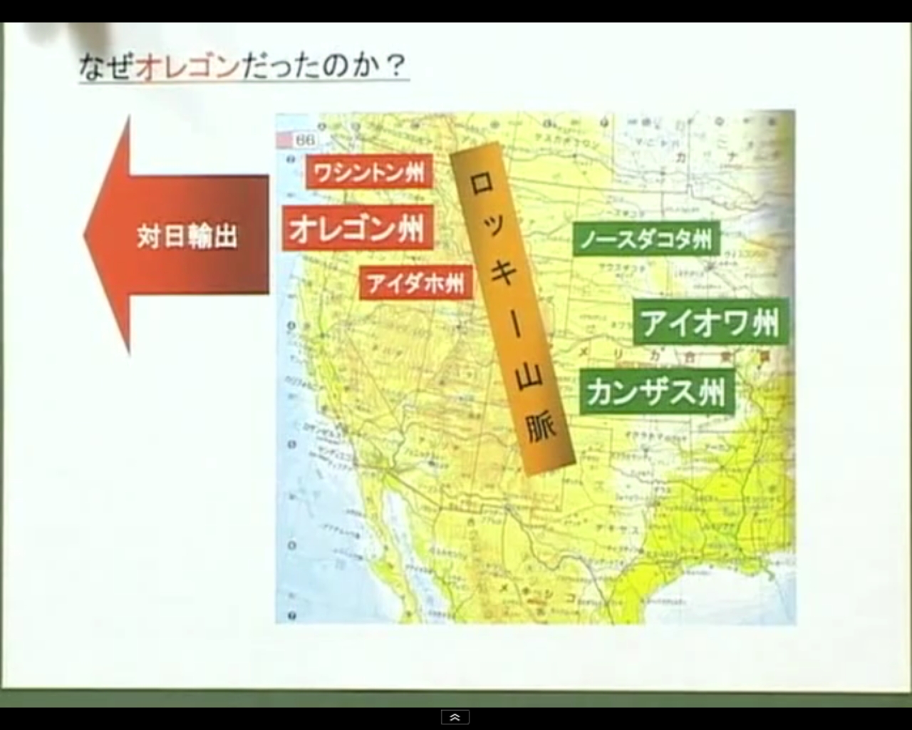 それで、学校給食なんかも作らしてコッペパンなんかを消費させていたわけなんだけど、その流れを作ったのがアメリカの農家からの働きかけだったというんだ。