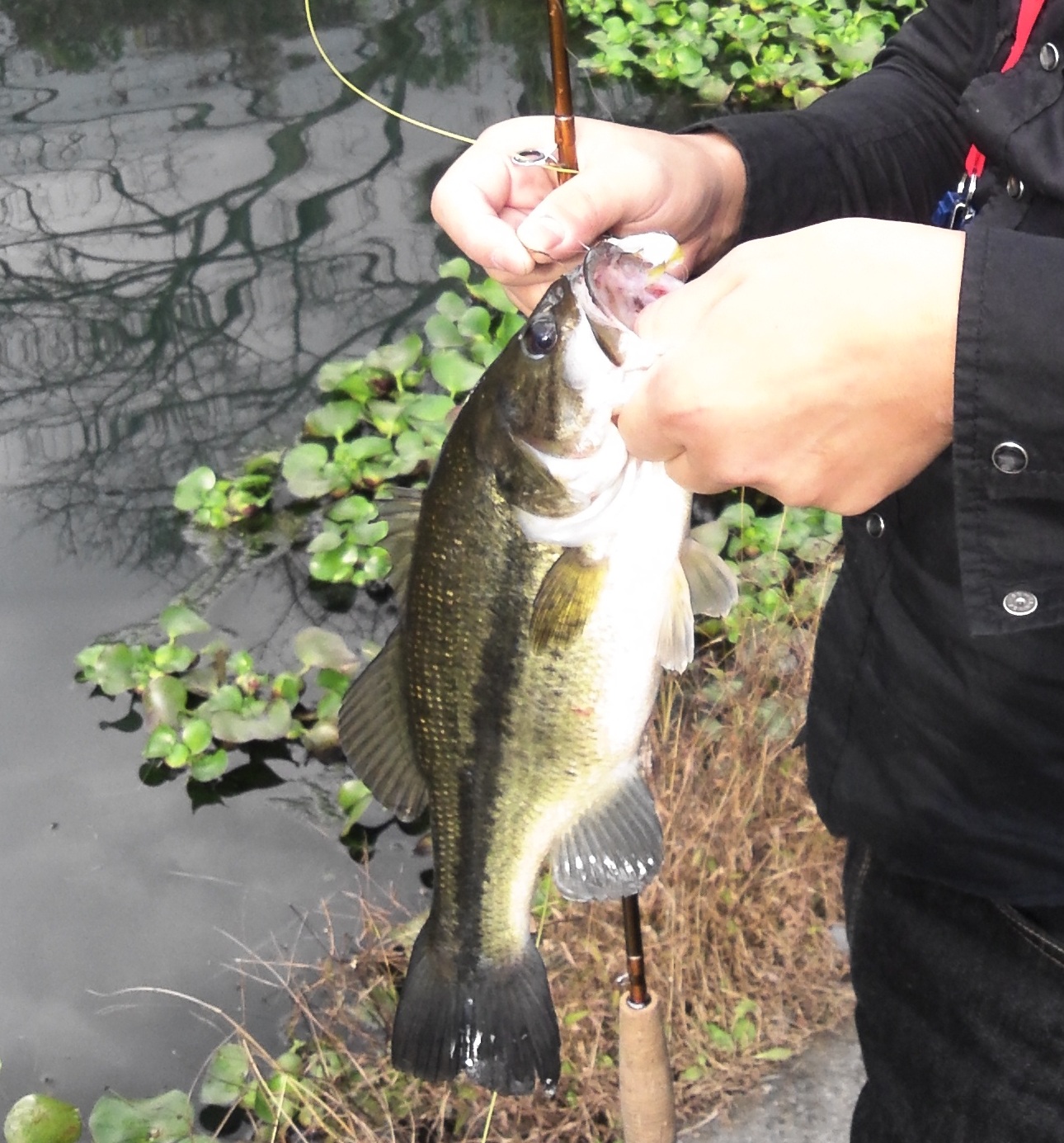初めてブラックバスってやつを釣ったんですが、この口のデカさを見て