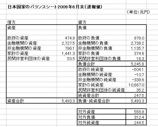 というわけで、この本から作ってみた日本国家のバランスシートを貼っておきます。