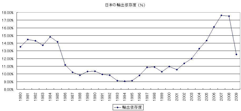 そんな台詞が聞こえてきそうですが、日本が貿易立国なんてもんじゃないのは皆さんご存知の通り。戦後貿易額がGDPに対して20%を超えたことは一度たりともありません。日本は国内での経済活動で発展して来ました。私たちの日々の労働によってです。