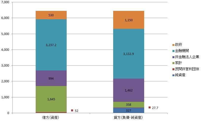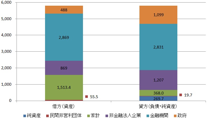 2013年末時点(速報値) 日本国家のバランスシート(単位:兆円)