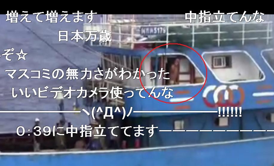 片山虎之助・たちあがれ日本参院幹事長は、漁船の甲板上では、船長とみられる男ら数人のうちの1人が「指を立ててた。(突き上げた)ような感じがみえた」と語った。