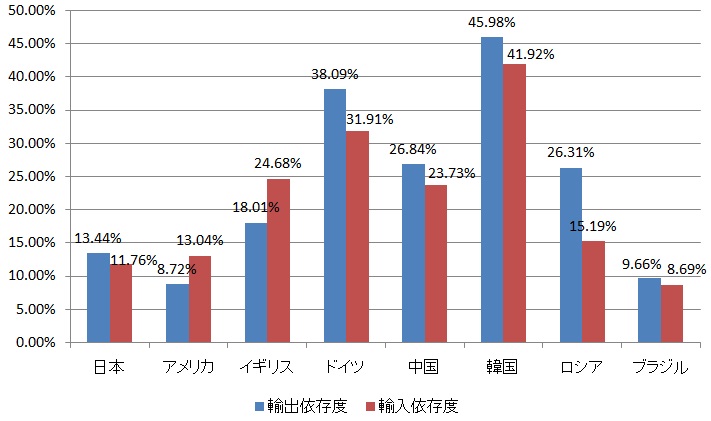 意外と日本は輸入輸出の貿易に依存しておりません。ですから「貿易立国日本」という言葉や「輸出によって成長してきた」というフレーズは誤りとなります