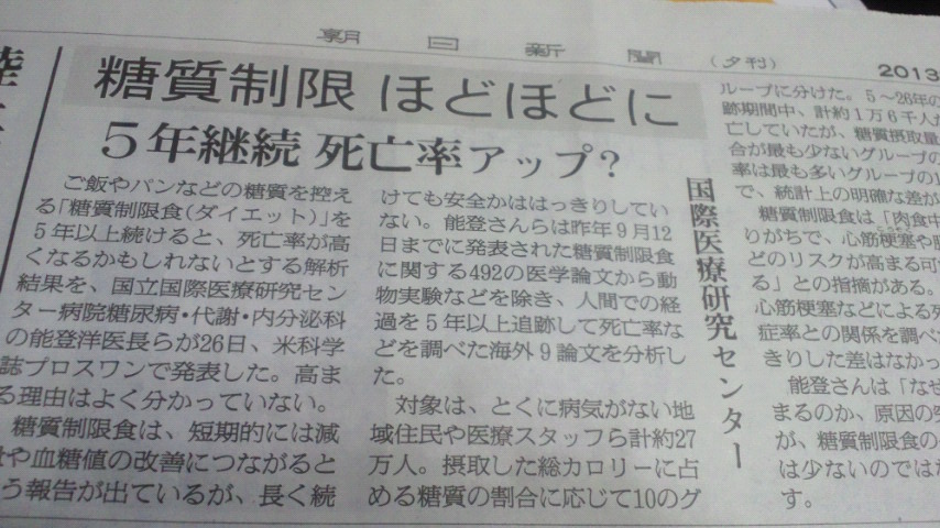 そうそう、せっかくですからその反対派の方々が心の拠り所にしている研究についての注意書きを載せておきます。去年の1月に朝日新聞あたりに「糖質制限すると死ぬよ」的な記事が載っていましたね。あぁ、そうそうこれこれ。