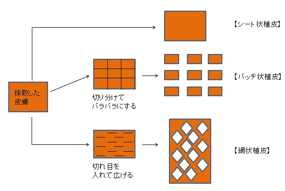 このように無理矢理皮膚に切れ目を入れて移植するような植皮術もありますが、湿潤療法で治るなら最初っから選ぶ治療法では無いですし、患者さんに「24年経っても植皮跡は消えずにこうなりますけどいいですか?」って確認が無いまま植皮されるケースが多いようです。