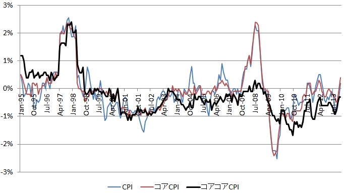そこでこの変動しやすいエネルギー価格を「除いた」消費者物価指数を「コアコアCPI」と言います。ここ、テストに出ます。