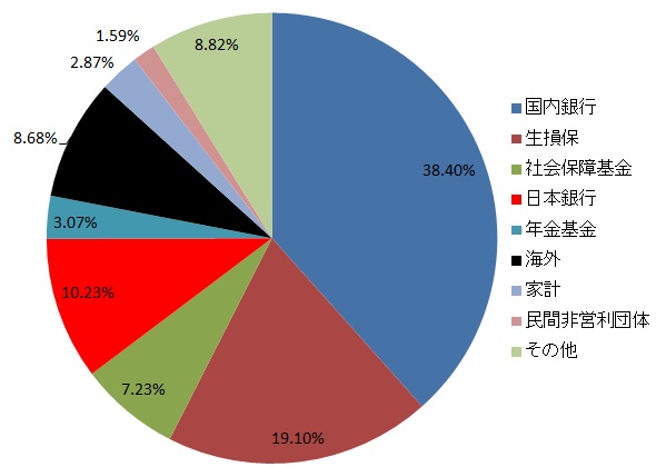 それでは政府は誰にお金を借りているのかと言えば、銀行や各生命保険会社などからです。