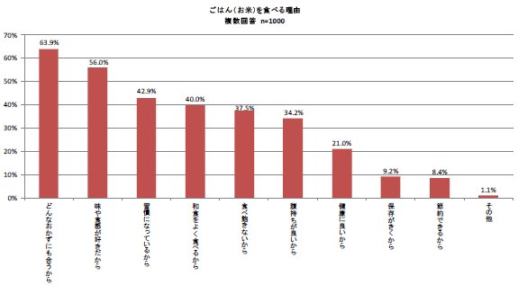 また、ごはんを毎日食べるのは「夕食」との答えが48%あった一方、朝食では週に1度もごはんを食べないとの回答が42%もあった。