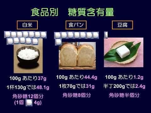 ちなみにごはんとパンと豆腐だとこんな感じ。
