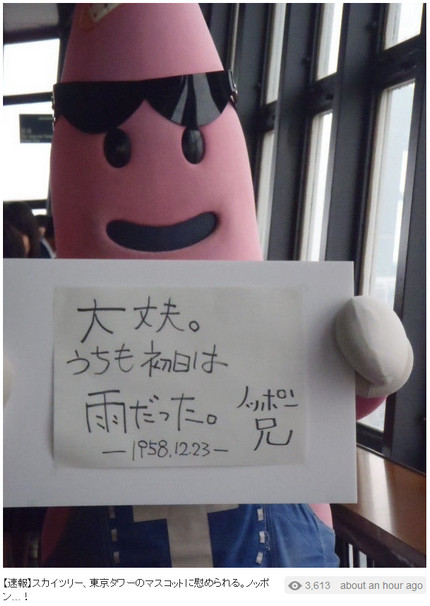 男前過ぎる! オープン初日に雨に見舞われた東京スカイツリーに東京タワーから応援メッセージが送られる