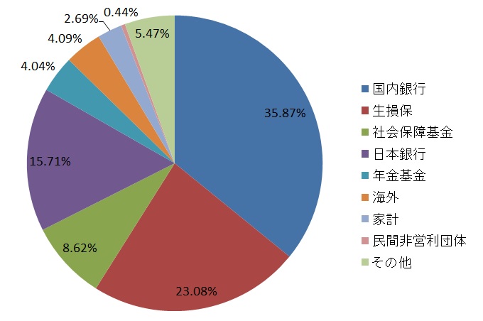 2013年9月末時点(確報値) 日本国債所有者別内訳(総額は818兆円)