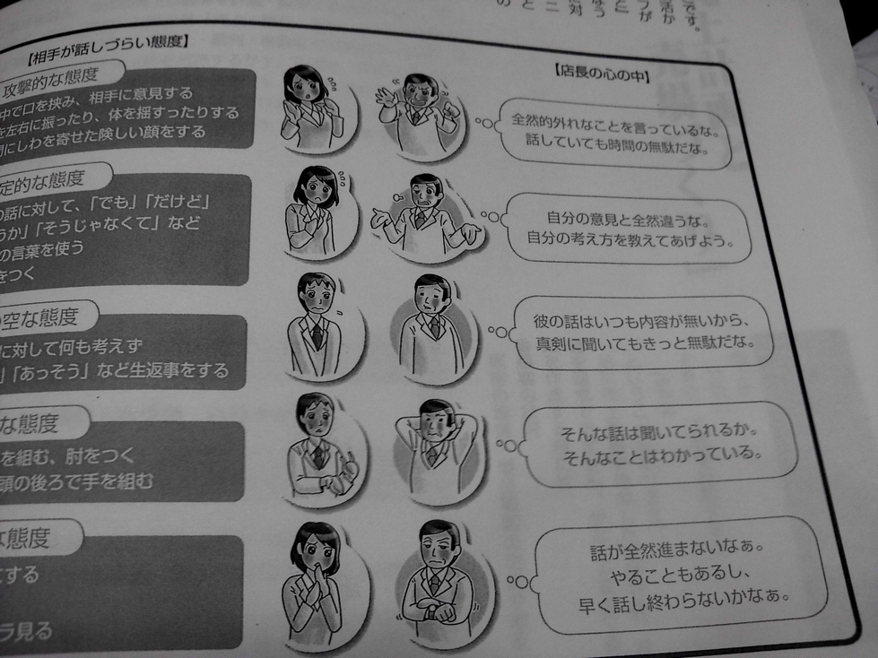 この中で特に面白かった部分がありまして、それは「相手が話しづらい態度はとらないように」というところ。