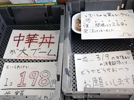 一応それなりに、「安い理由」らしいことは書いているのですが、機械的なPOPではどうも心が動かされないようです。手書きで店長の写真入りまでやって初めて「期限切迫」とか「発注しすぎた」という言葉に信ぴょう性が出てくるのではないでしょうか。