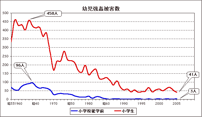小学生数は60年代の4割減ですが、レイプ被害は1/10になっています。