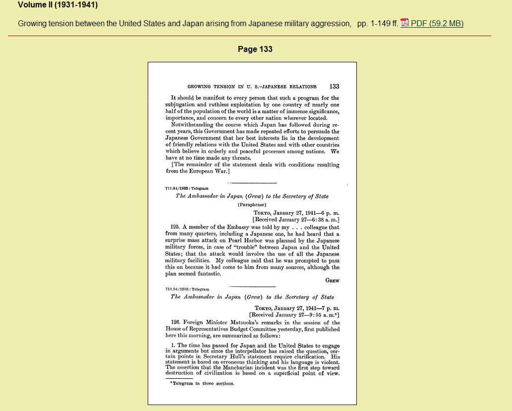 1)グルーの電報の元のファイル: 米国ウィスコンシン大学 外交文書図書館