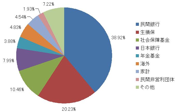 2010年末(速報値)版 日本国債保有者別内訳(総額は727兆円)