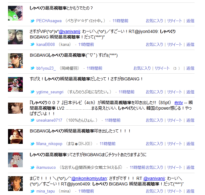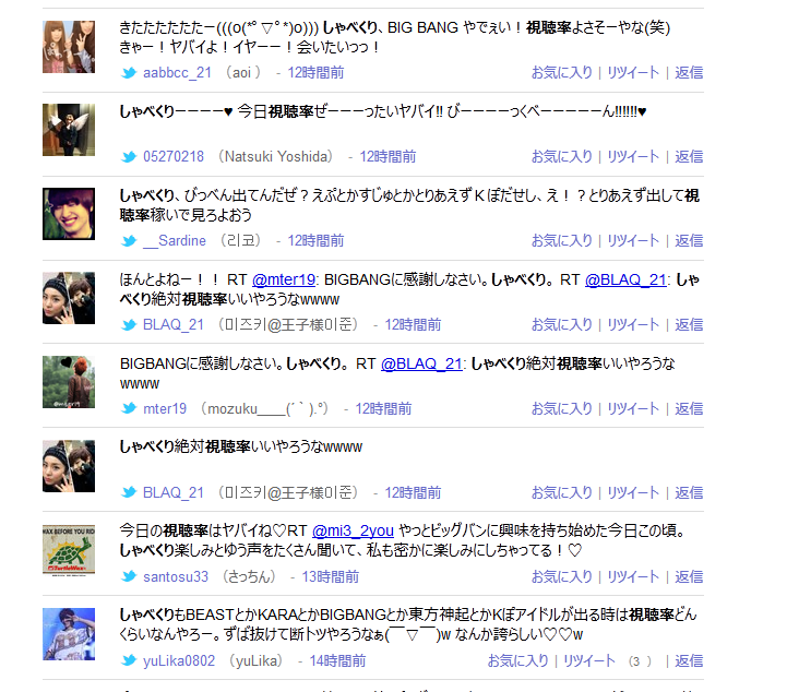 「◯◯が瞬間最高視聴率を叩きだした!」ってツイートしまくるbotがいるようで、それに乗せられた韓流ファンの方々が多数いらっしゃったようです。