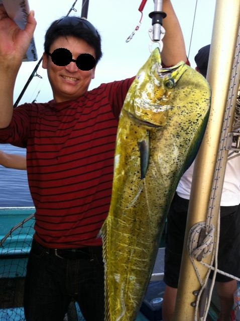 シイラは釣られてる時に疲れると黄色になるらしく、シイラを黄色くしてしまうのはあんまりうまくない証拠らしいです。